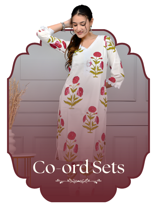 Ruhani Ruby Pure Cotton Hand Block Gold Print Co-ord Set