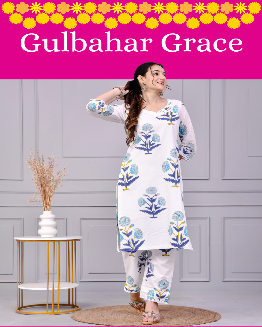 Regular price Rs. 1,999.00Regular priceUnit price / perRs. 2,499.00Sale price Rs. 1,999.00Gulbagh Block Print White Floral Cord Set