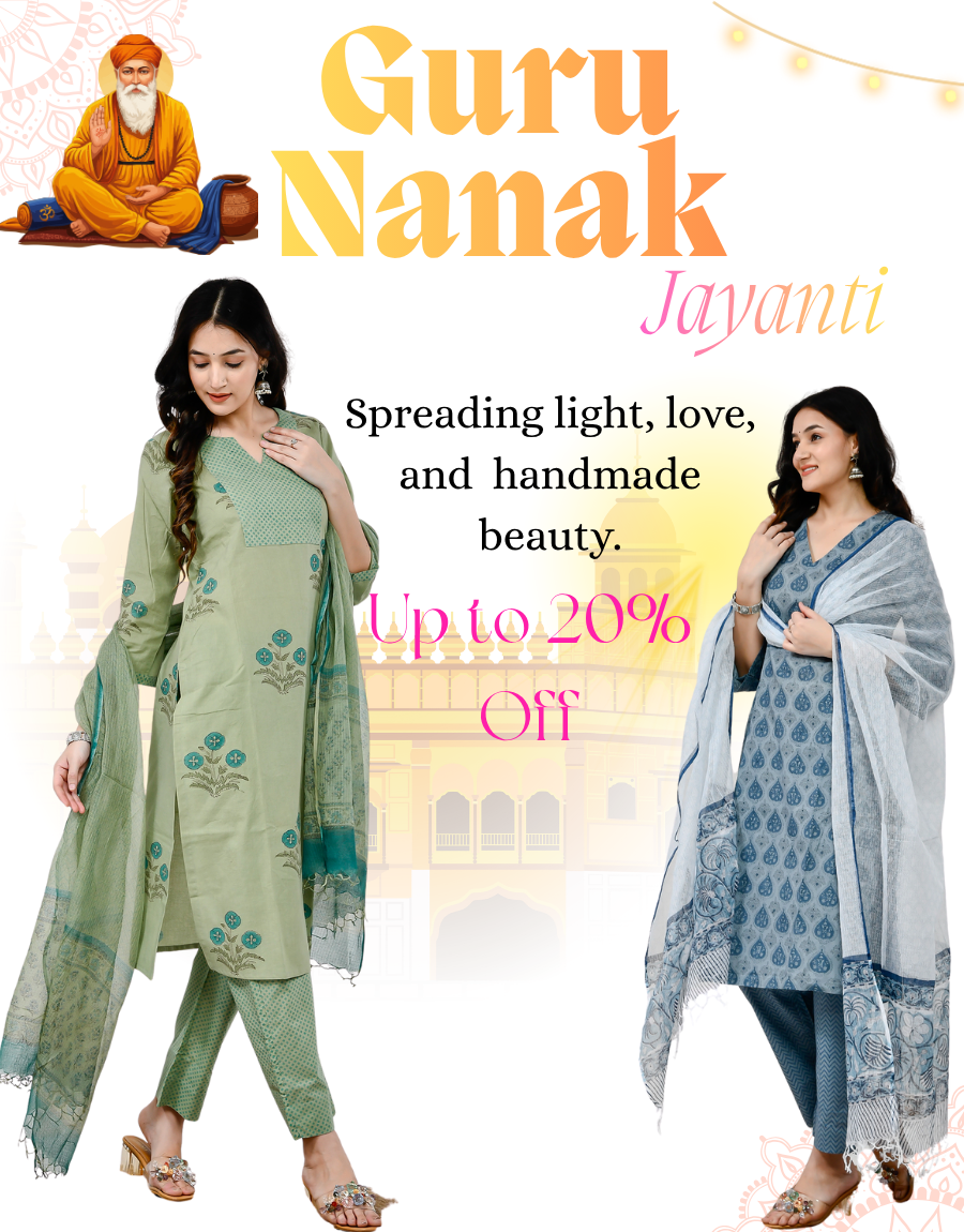 Regular price Rs. 2,499.00Regular priceUnit price / perRs. 2,399.00Sale price Rs. 2,499.00Suhana Printed Cream Cotton Suit Set with Kota Doriya Dupatta