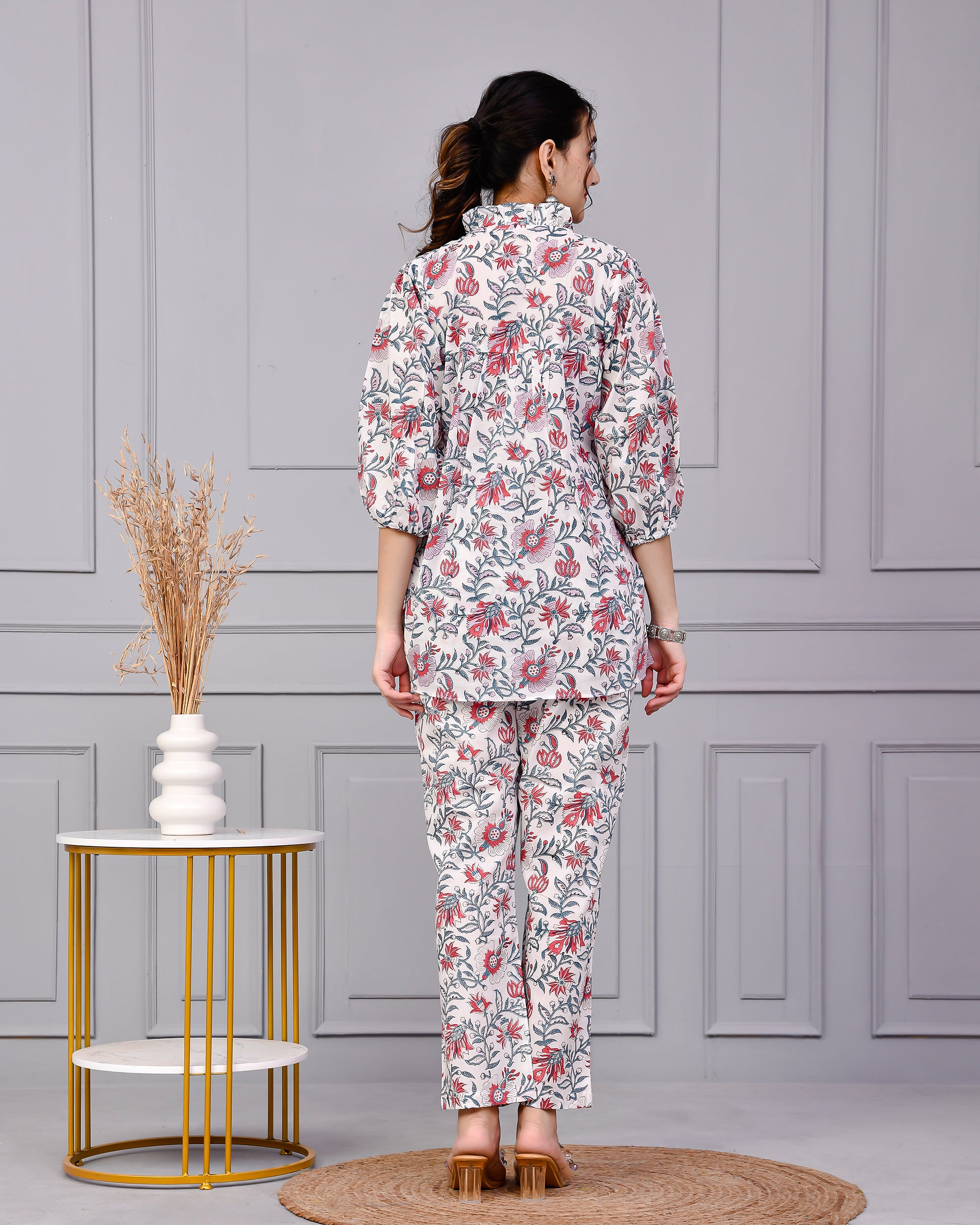 This floral hand block printed kurta set is a subtle yet stunning celebration of Indian heritage. Designed for women who appreciate sustainable fashion and effortless style, this co-ord set blends comfort with cultural craftsmanship – making it a must-have for your ethnic wardrobe.